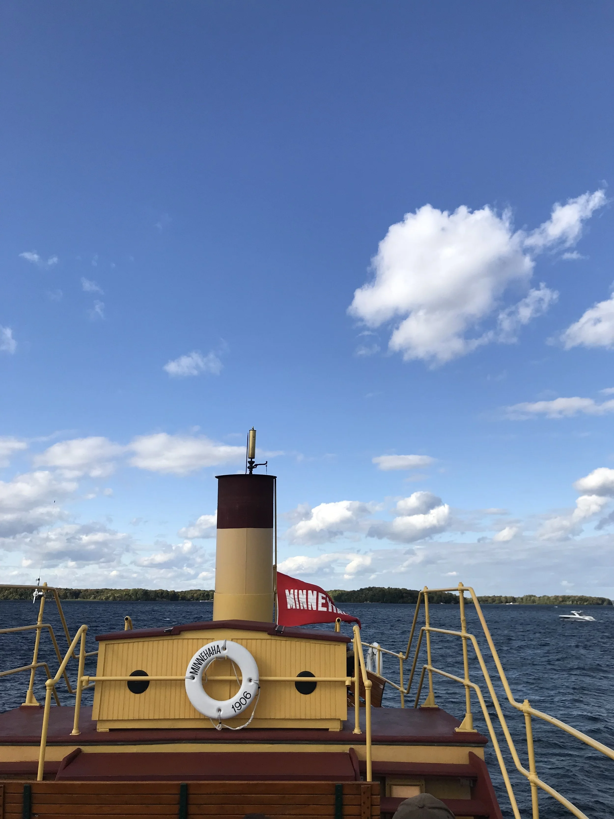 My girlfriend and I were fortunate enough to be aboard Minnehaha for that final voyage and, unknowingly, she and I would be the last passengers to step off her decks for what ended up being the last time. She nearly had to drag me off the boat! The weather that day was sunny, breezy, and cool. . . Truly the perfect day to enjoy a ride aboard such a historic boat and large part of our shared history in the Minnetonka community.
