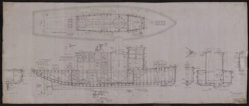 Interestingly, all windows onboard were sashed so they could be opened & closed individually at the crew’s desire; a design less seen on work boats of the time.