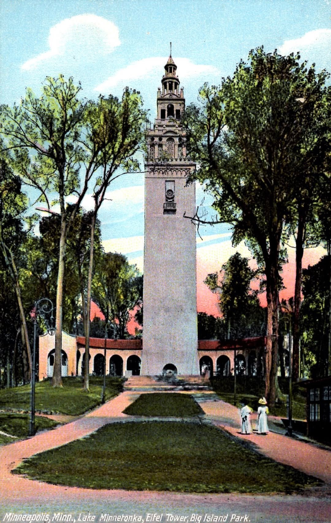 For now, though, you and your party begin to make your way back toward the boat docks. Before climbing down the wide flight of concrete steps by the wharf, you take a moment to look back at the picturesque scene of the park. In the center, a 183 foot water tower stands as the icon of the whole island. Built to look like Spain’s famous Tower of Seville, it serves not only as the island’s fresh water source but also as housing for a massive rotating beacon which powers on at night. From Excelsior, Wayzata, and the Lafayette Club, this electric light can easily be seen gleaming on the otherwise dark horizon. Too bad we won’t get to see it lit up today. Maybe on another visit, and at a later hour. The park still has so much we didn’t get to see. . .